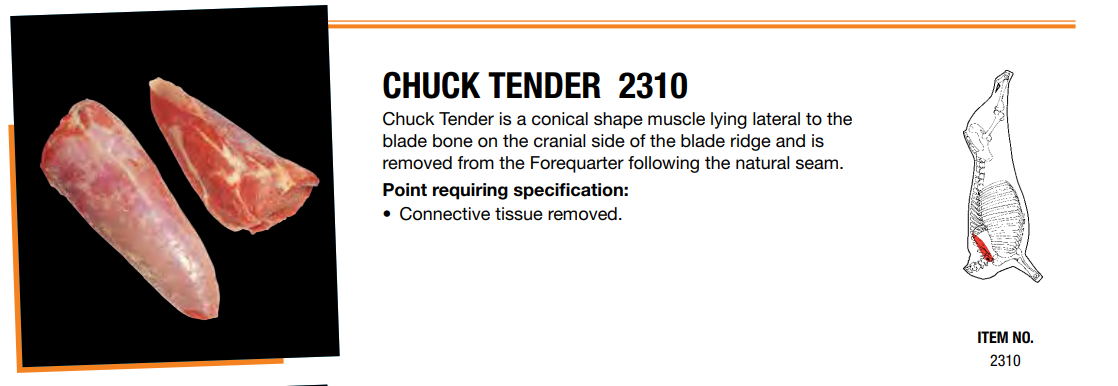 Chi tiết phần cắt Thịt Fillet Thăn Cổ Bò Úc Ngũ Cốc Tươi 100 Ngày - Chuck Tender Chill 100 days.